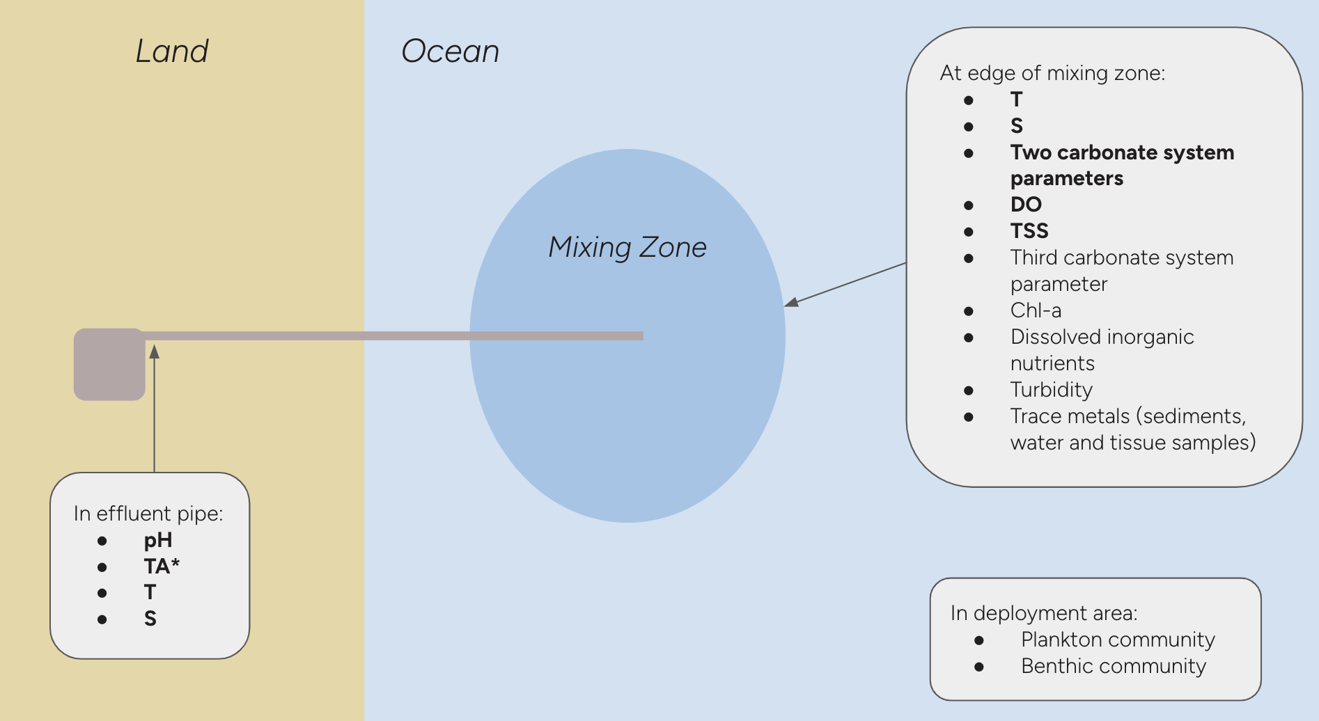 - Projects must be located on the coast, discharging Total Alkalinity from a fixed point into ambient ocean conditions.